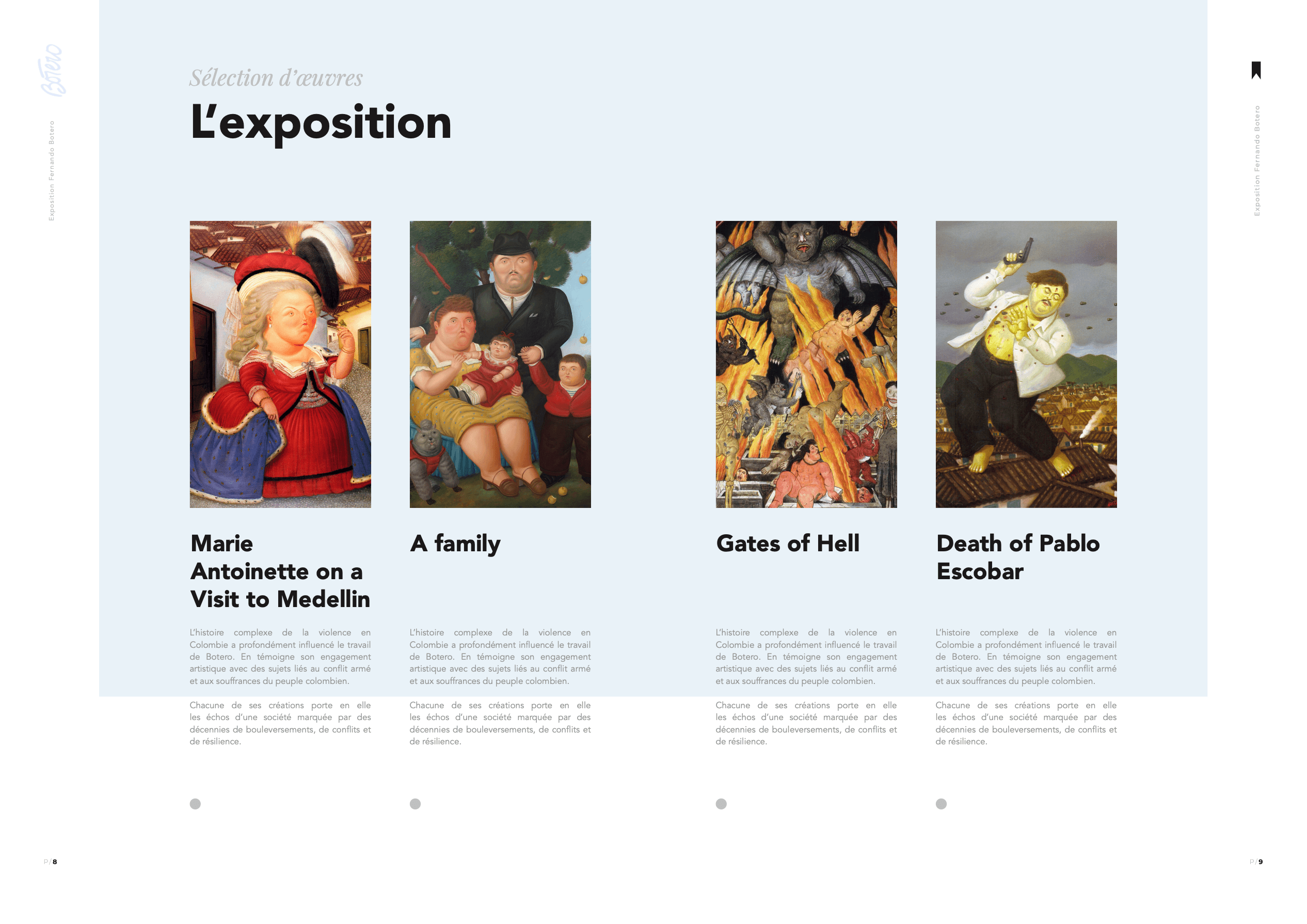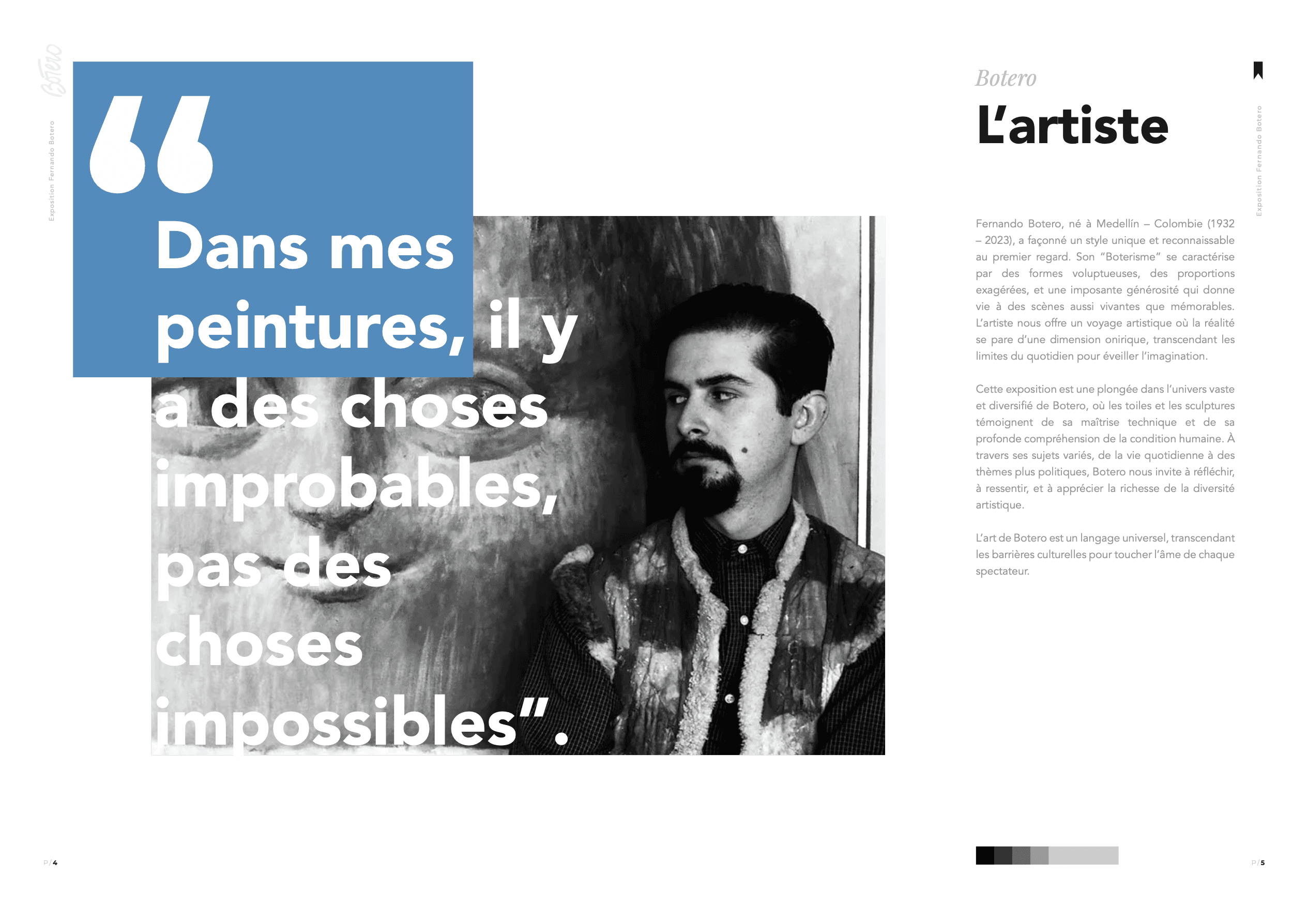 Réalisé dans le cadre de mon master, ce projet de design graphique avait pour objectif de concevoir l’identité visuelle d’une exposition d’artiste. Le choix de Botero s’est imposé naturellement, tant son travail questionne la notion de volume et dépasse la lecture réductrice souvent associée à la « rondeur ».